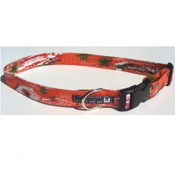 Each item is hand-made, so no two collars or leashes are exactly the same--ONE of the nice things about them! Smaller width items show less pattern--more about the colors. (shown is a 1" Large Collar).